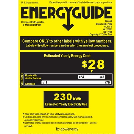 Keep your food and drinks chilled with the Galanz 1.7 Cu ft One Door Mini Fridge. It stands less than 2' tall, giving you access to a compact size cooler that's ideal for use in a dorm room, an office, a game room or any room. This Galanz Black mini fridge features a half-width freezer compartment that is suitable for storing ice and frozen food. It also has a coated wire shelf that slides out for easy access to items stored in the back. It even features a lower storage area and the interior door has space for condiments and a 2-liter bottle. Additionally, the Galanz 1.7 Cu ft One Door Mini Fridge includes two leveling front legs for improved stability and a reversible door that enables you to hang it opening from either the left or the right side.