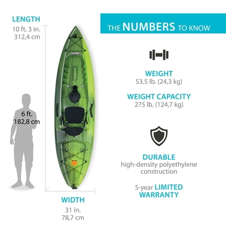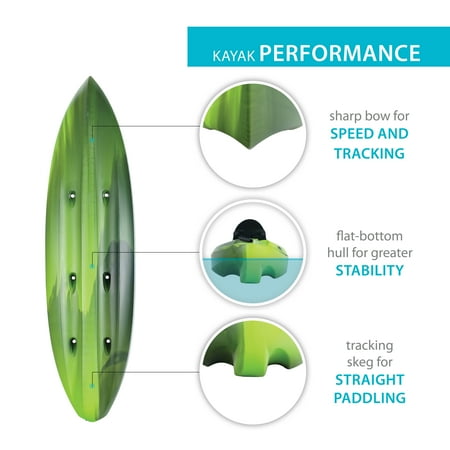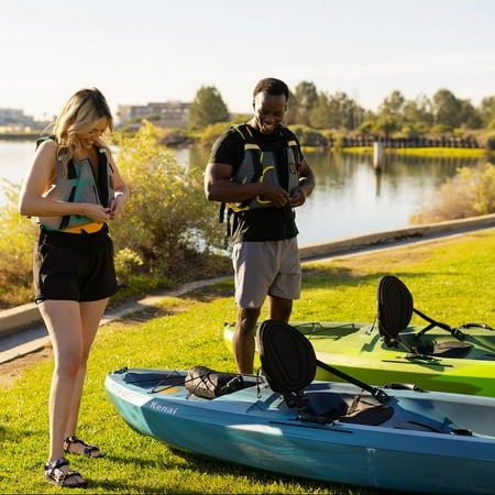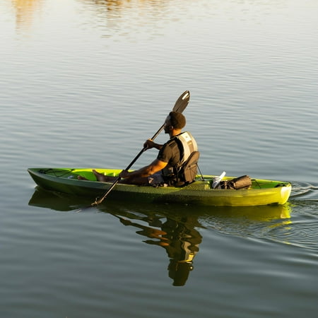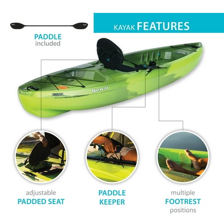 Turn any weekend into a relaxing getaway with the Lifetime Kenai. Escape to a quiet lake, calm ocean bay, or slow moving river and decompress. The adjustable padded seat and backrest allow you to maximize your comfort on your adventures. Experience the excellent safety and stability provided through the flat bottom, deep tracking channels, and stability chine rails. The quality construction, UV-protection, and impact resistance ensures that you get a durable kayak that can withstand the elements. The front and rear t-handles and side luggage handles let you easily transport the kayak to and from the waterfront. With a water bottle holder and a storage hatch, the Lifetime Kenai is made to enhance your paddling and kayaking experience
