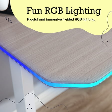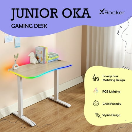 Brighten up your child’s gaming space with the X Rocker Oka Kids Gaming Desk, a perfect blend of style and functionality designed for young gamers. Featuring vibrant 4-sided RGB lighting, this desk creates an exciting and immersive environment that enhances every gaming session and captivates your child’s imagination. The desk’s modern white and light wood finish adds a chic touch, making it an eye-catching piece that fits seamlessly into any kid’s room or study area. This contemporary design not only elevates the aesthetics of the space but also provides a versatile backdrop for gaming and learning. With its engaging design and customizable RGB lighting options, the Oka Gaming Desk ensures that gaming and homework are both enjoyable and visually stimulating. It’s an ideal addition to any gaming furniture collection, enhancing your child’s setup alongside their favorite gaming chairs and accessories. Crafted for durability and ease of maintenance, this desk stands up to the demands of everyday use, making it perfect for young gamers who need a reliable workspace. Whether they’re diving into the latest racing game or tackling school assignments, the Oka Gaming Desk is designed to support their activities. Elevate your child’s gaming experience today with the X Rocker Oka Kids Gaming Desk. Shop now at Walmart.com for premium kids’ gaming items and create the ultimate gaming sanctuary in your child’s room!
