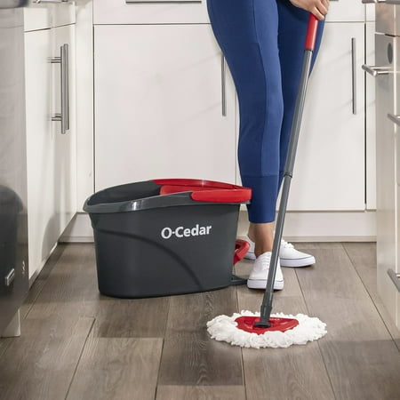 America’s #1 spin mop* is trusted for a reason. The O-Cedar EasyWring™ Spin Mop & Bucket System was the original hands-free spin mop—and it's still the easiest way to deep clean your floors without bending or getting your hands wet. With its built-in foot pedal wringer, reusable microfiber mop head, and adjustable handle, this all-in-one system is designed to make mopping simple, effective, and mess-free. The included microfiber mop head removes over 99% of bacteria with just water**, and it's completely machine washable—toss it in the wash to reuse again and again. The triangular mop head easily reaches into corners and under furniture, while the adjustable handle helps reduce back strain during deep cleans or everyday touch-ups. Perfect for all sealed hard floor types, including hardwood, tile, laminate, and vinyl, the EasyWring system delivers a powerful clean with less effort—because your home deserves nothing but the best. *The EasyWring #1 Spin Mop claim is based on the total spin mop unit sales of Circana Scan, MULO, L52 Week Ending 12/31/24. **Removes, does not kill, over 99% of E. coli and Staph. Aureus from pre-finished hardwood flooring and ceramic tile using tap water, as tested at an independent, accredited lab.