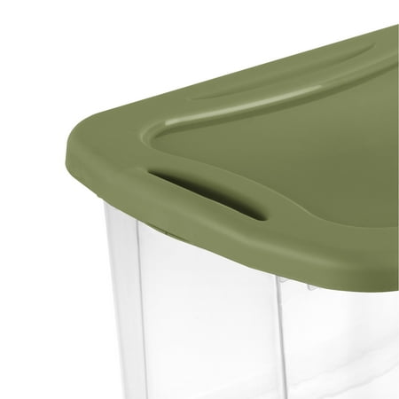 Make storing and moving easier than ever with the Sterilite EZ Carry Clear Storage Bin with Lid! Innovative through-handles provide a comfortable, full grip for easy lifting and carrying, making transport through doorways and up or down stairs a breeze. Recessed lids allow bins to stack neatly to maximize vertical storage space, while the clear base lets you locate contents quickly. This 40 Quart plastic storage container is perfect for storing clothing, accessories, crafts and more. Conquer your organization challenges with the EZ Carry line, ideal for any room in the home or for on-the go storage needs! The overall assembled dimensions of this item are 21 1/4" L x 15 7/8" W x 11 1/2" H.