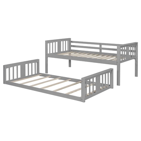 Solid Wood Bunk Bed for Kids | Space-Saving, Sturdy & Stylish Sleeper Solution Give your child’s bedroom a functional upgrade with our Solid Wood Bunk Bed for Kids—crafted to prioritize safety, durability, and smart space optimization. Perfect for shared rooms or cozy spaces, this bunk bed combines timeless design with practical features to grow with your family’s needs. Weight & Dimensions: Overall Product Dimension: 79.9" L x 41.3" W x 51.2"H Detail Product Dimension: Please refer to the Size image Number of Package: 1 Overall Product Weight: 108.64 LBS Weight Capacity: Upper bed: 250LBS; Bottom bed: 250LBS Recommended Mattress Thickness: 6" Recommended Age: >6 years old Specifications: Product Type: Twin over Twin Bunk Bed Size: Twin over Twin Color: Gray Product Material: Plywood + Pinewood Number of Slats: Upper bed: 14; Bottom bed: 7 Box Spring Required: No Mattress Included: No Suggested Number of People: 2 Notes: Manual measurement has been used; there may be some reasonable error. Actual samples take all the pictures; slight chromatic aberration may occur due to lighting or display.