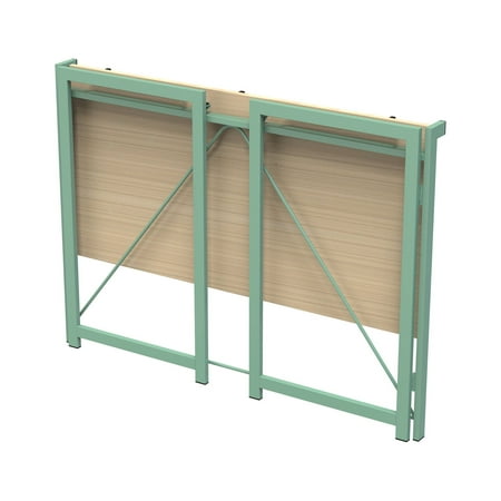 Mainstays Sage Frame Folding Desk with Natural Grained Top,Adult Specifications product size: 40.55”L x 19.69”W x 29.25”H Weight: 22.8 lb Materials Strong steel frame MDF board Sage green frame +Natural top Everything you need is efficiently packed into one box and shipped straight to your door Folding Desk - SIMPLEST INSTALLATION - 8 seconds to complete. When not in use can be folded in the corner, save space; Also convenient to carry when going out for a picnic. APPLICABLE ROOM AND FUNCTION : Suitable for study, bedroom, living room, kitchen, children's room, office. Can be a computer desk, learning tables, game tables, picnic tables,secretarial desk. Package Includes: 1 x Table Frame 1 x Instruction Set Finish Type: Powder Coated MDF board:39.17in*19.68in*0.59in