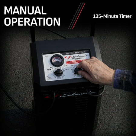 A reliable manual wheeled battery charger with substantial starting power is essential for any serious home garage. The Schumacher Electric SC1437 2-in-1 12-Volt Manual Wheeled 6-Amp Battery Charger and 150-Amp Engine Starter fills this role perfectly. While automatic chargers may be suitable for some individuals, others prefer full control over the charging process to ensure precision. The SC1437 offers this control, enabling users to set the timer and amperage while monitoring progress on the amp meter. Constructed with a sturdy metal case, this charger is designed to resist damage and endure heavy usage. Its retractable handle and compact wheels provide a smaller footprint, making it ideal for garages with limited storage space. With its robust performance, exceptional design, and long-lasting durability, the Schumacher Electric SC1437 emerges as the superior option for battery charging and starting.