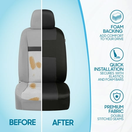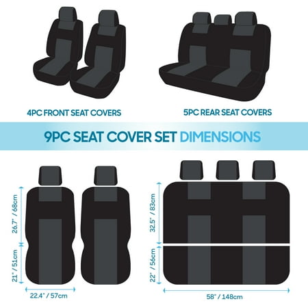 BDK PolyPro Car Seat Covers Full Set in Charcoal on Black – Front and Rear Split Bench for Cars, Easy to Install Cover Set, Accessories Auto Trucks Van SUV