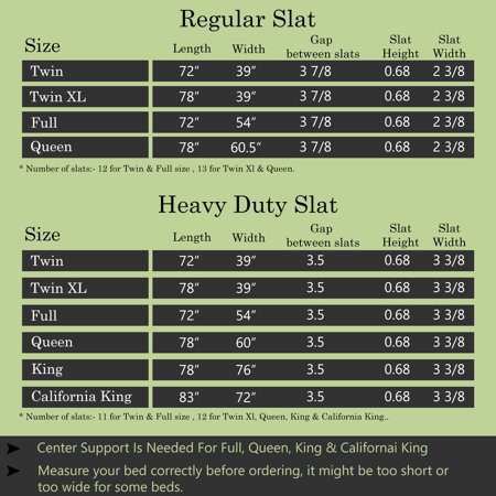 The standard wooden slats provides an excellent surface foundation for any platform beds, bunks and daybeds. It adds support to any mattress type and will keep mattress stay in good shape thus extending the life of your mattress The wooden slats made out of Black Spruce wood are linked to prevent movement during use and they effortlessly extend your mattress's life span and prevent sagging It will give a firm Bottom support for the mattress These can be avoided with the use of slats Using slats doubles the mattress' Life expectancy These slats is a good alternative in lieu of a box spring that may be too high for day beds It will give the bed a lift without adding much Height These slats is strong enough to be used directly on bed frame in lieu of a box spring.