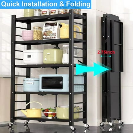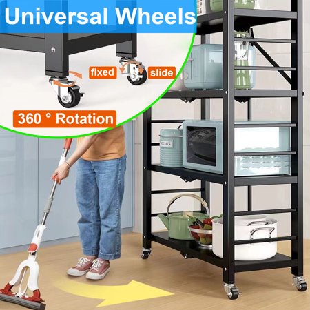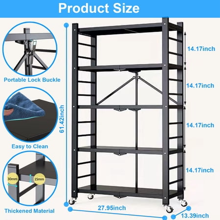 Storage Shelf,Storage Rack,Shelving Unit,Storage Shelves, Wire Shelving Unit,Shelving Racks,Heavy Metal Shelf,Foldable Storage Shelf,Kitchen Shelf 5-tier storage shelves (with a big size of 27.95x13.39x62.99inch) 18mm steel pole can hold up to 397lbs/180kg 4 wheels with 360° rotation Specifications: Material: Carbon Steel Color: Black Shelf Load Weight: 397Lbs Size: 27.95x13.39x62.99inch 360° movable wheels:4 Quantity: 1Pcs Occasion: Home, Office, Garage Package Contents: 1 x 5-Tier Wire Shelving 4 x Wheels 【Strict Quality Control】Storage shelf are manufactured with strict quality control standards. Each foldable storage shelf and its components undergo extensive testing for optimal performance and to pass laboratory performance tests. As long as you use our foldable storage shelf, we are responsible for you. If you have any questions, you can always contact us. All of this is just to give you a better shopping experience.