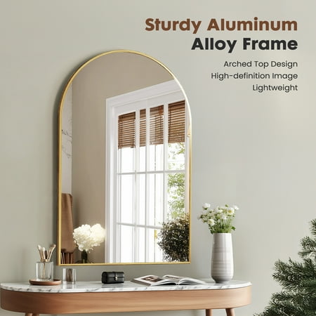 The Gianna Arched Wall Mounted Mirror adds style and function to any room. Its elegant arched design makes spaces look brighter and larger, perfect for bathrooms, living rooms, bedrooms, or entryways. Made with a strong black aluminum alloy frame, it’s rust-resistant and built to last. The high-definition, explosion-proof glass gives a clear reflection and added safety. Easy to install with included hardware, this mirror is a simple yet stylish upgrade for your home.