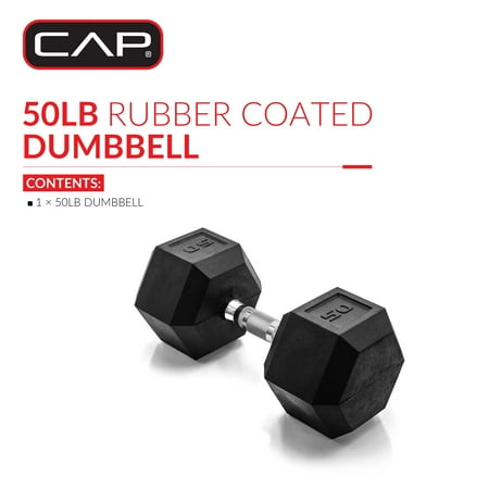 Enhance your workout routine with the CAP Barbell Coated Hex Dumbbell. This sturdy dumbbell is a premium quality weight that's ideal for home use. Made of solid cast iron with a protective black coating, it features an easy-to-grip handle and encased heads to prevent damage to floors. The ergo designed handle helps to reduce hand fatigue and maximize comfort, while the knurling prevents the dumbbell from slipping during workouts. The Hex shaped dumbbell heads ensure the dumbbell will not roll when set down, avoiding injuries and allowing for easy storage. Dumbbells can be used to exercise all major muscle groups, including arms, chest, back, abs, legs and core. Making them perfect for a full body workout. Sold individually.