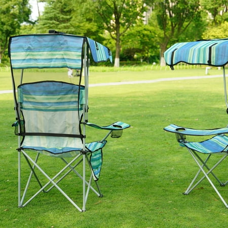 FlexWave Folding Camp Chair,Portable Outdoor Chair,with Shade & Cup Holder,for Camping, Beach, Fishing, and Sports Events