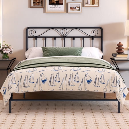 Our Alden Designed vintage headboard that makes your bedroom filled with ambience of literature and art. You could see the metal headboard with traditional farmhouse style and playful mustache design fit for any room and bed décor. The black finish and sturdy metal construction ensure long-lasting support. Available in Full and Queen sizes, this headboard offers three height adjustments for your perfect fit. Assembly is easy, making it a seamless addition to your beloved bed.