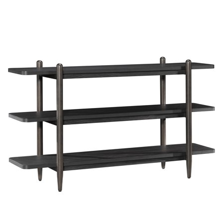 The Better Homes and Gardens Springwood Horizontal Bookcase is a stylish and functional way to organize a living space with an open concept while adding a touch of tropical style. It's designed to display cherished items while providing ample storage space for books, framed photos, and collectibles. With 1-inch thick shelves and a durable construction, this 3-shelf bookcase is built to last. Plus, it's finished on all sides for ultimate versatility and can be placed anywhere in any room. This open-shelf bookcase is perfect to be used as a room divider, against a wall, in a corner, or even as a console table behind the sofa. The solid wood legs of this open bookshelf come with adjustable levelers to ensure stability on any surface. The charcoal finish adds a cool and elegant touch to any home decor, making this modern bookshelf a beautiful addition to any room. Elevate any room with the Better Homes and Gardens Springwood Horizontal Bookcase.