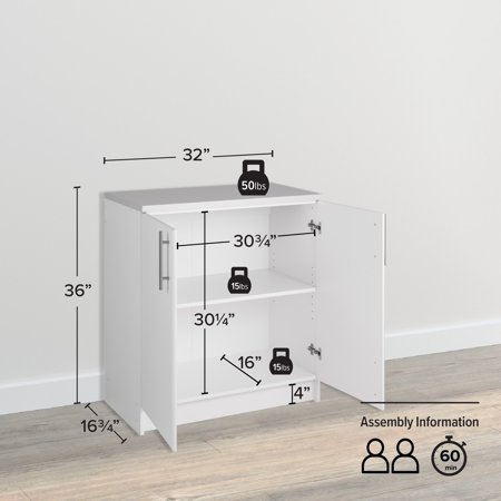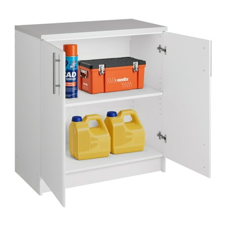 The Prepac Elite Home Storage White Base Cabinet with Melamine Countertop is the perfect addition to your laundry room, workshop or garage. The 1 in. thick grey melamine countertop provides a durable work surface that will last through all your projects. With one adjustable shelf, this cabinet will accommodate anything you need to store in it. Combine it with other pieces in the Elite Collection for a customized workspace.