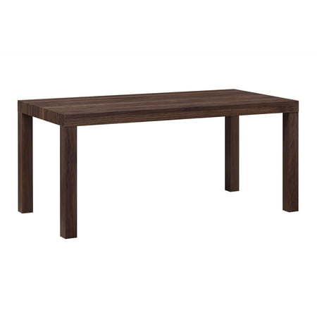 Keep your essentials close by with the Mainstays Parsons Coffee Table. Made of PVC laminated hollow core, the classic walnut woodgrain finish pairs well with any style and decor. Keep your snacks, remotes, and electronics on the table top to have everything you need for a night in within reach. The minimalistic design is ideal for small spaces like dorm rooms and first apartments. The sturdy construction and water resistant finish will keep this Coffee Table looking great for years to come. The Coffee Table ships flat to your door and requires minimal assembly upon opening. Simply attach the 4 legs to begin using. Once assembled, the End Table measures to be 17.5"H x 39"W x 19"D.