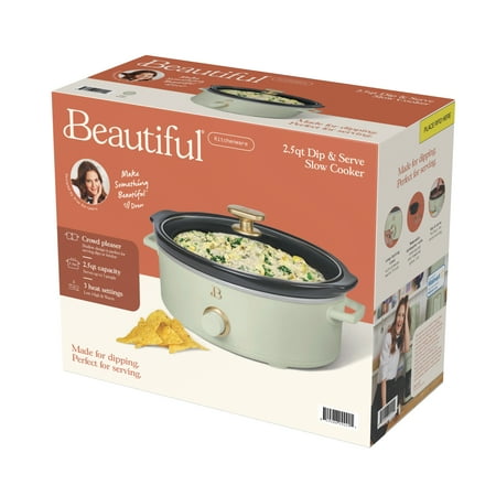 Perfect for dips, fondue, and small-batch meals, the Beautiful 2.5qt Slow Cooker is designed to make game days a win every time. The shallow, wide design means you can dip your chip right in the pot or mix and serve with ease. With three heat settings and a dishwasher-safe pot, cleanup is just as simple as the cooking.