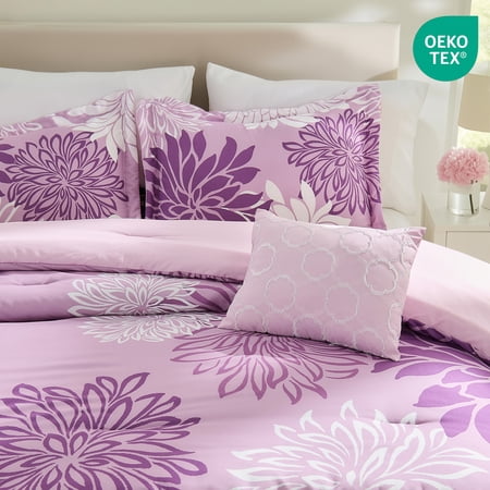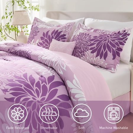 Whether it is the energetic tones or soothing neutral bedding options that you are looking for Regency Heights has a product that has the best of both the worlds. The 5-piece Floral Printed Comforter Set in purple adds a fun element to your whole bedroom ensemble. The pleasant combination is sure to heighten your excitement. This 5 piece comforter set features a bold, colorful floral design to turn your bedroom into favorite getaway. With the Regency Heights' latest collection featuring modern and nature-inspired patterns, is better for you, your family, and the planet. It's offered available sizes: Queen and King.