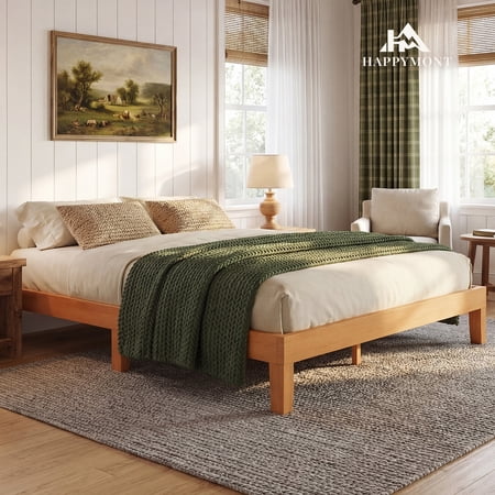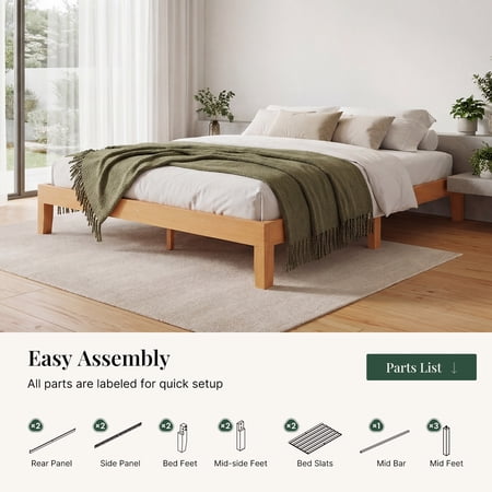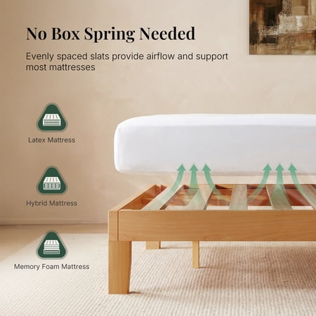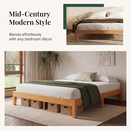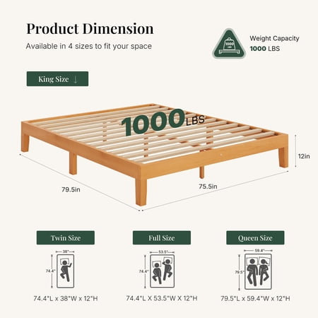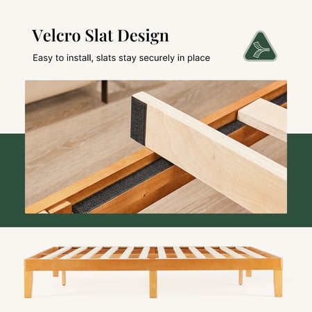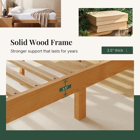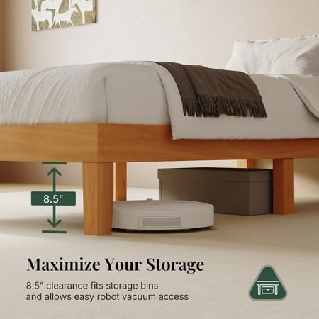 The CONCETTA bed frame is made from solid pine wood and wooden slats to ensure durable quality. Solid wood legs for added support and stability can support all types of mattresses and extend the life of your mattress. Featuring a simple and traditional design style, it complements any home decor and will accent your bedding. The wooden design also provides a stylish look for your bedroom, guest room, hotel and more. This wooden bed frame sits 8.5 inches off the ground with plenty of free space to store suitcases, luggage, outdated items, and more. Additionally, this height allows the robotic cleaner to slide in for easy cleaning. Choose the CONCETTA bed frame for a great home life!