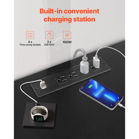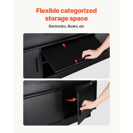 Product Description TV Stand with Mount Are you tired of the hassle of a wobbly TV or the fear of damaging your pristine walls? Look no further! This TV stand is the perfect solution, providing a stable floor-standing unit with an integrated TV mount. Not only does it offer a secure installation for your TV, but it also offers ample storage space. With its sleek design, it effortlessly enhances the aesthetics of your home. TV Stand with Built-In Mount Enhance your living room or bedroom with the KFFKFF TV Stand with Built-In Mount. This innovative stand combines a floor-standing unit with a TV mount, providing a secure and stylish solution for your TV. With ample storage space for DVDs, CDs, game consoles, and more, this stand is the perfect choice to complement your home decor. Say goodbye to clutter and hello to organization with this versatile TV stand. Smart Lighting Create the perfect ambiance with the KFFKFF Smart Lighting TV Stand. Featuring a magnetic light tube and LED light strip, this stand allows you to easily adjust the lighting to suit any occasion. Whether it's day, night, or a themed event, you can control the lighting with the included remote or through the app. Elevate your entertainment experience with the KFFKFF Smart Lighting TV Stand. Rotation & Height Adjustment Experience optimal viewing angles with the KFFKFF Rotation & Height Adjustment TV Stand. This stand offers manual adjustments, allowing you to tilt the TV up to 34° left or right. Additionally, you can adjust the height of both the stand and the column, ensuring you find the perfect viewing position from any spot in the room. Enjoy a customizable and comfortable viewing experience with the KFFKFF Rotation & Height Adjustment TV Stand. High Compatibility Upgrade your living room or bedroom decor with the KFFKFF High Compatibility TV Stand. Designed to accommodate 32-75 inch TVs and VESA hole patterns up to 600×400mm, this stand is the perfect addition to any home. With its sleek design and versatile compatibility, the KFFKFF High Compatibility TV Stand is a must-have for any TV enthusiast. Charging Station Simplify your entertainment setup with the KFFKFF Charging Station TV Stand. Equipped with a built-in power board, this stand offers 4 three-prong outlets, 2 USB ports, and a 6.6 ft / 2 m power cord. Now you can conveniently charge your TV, DVD player, Wi-Fi router, and more, all in one place. Say goodbye to tangled cords and hello to a clutter-free space with the KFFKFF Charging Station TV Stand. Storage & Secure Protect your valuable items with the KFFKFF Storage & Secure TV Stand. The non-woven fabric storage drawers keep your belongings safe from scratches or damage. Additionally, the security lock at the bottom of the stand ensures that your TV remains stable and secure. Experience peace of mind and organization with the KFFKFF Storage & Secure TV Stand. Specifications Item Model Number: C240411S-01 Power Strip Wattage: 1500W Socket Ports: 4 x Three-Prong Outlets + 2 x USB Ports Strip Light: 16 Colors LED Strip Light Light Tube: 2 x Magnetic Light Tubes TV Stand Weight Capacity: 200 lbs / 90.7 kg TV Cabinet Weight Capacity: 110 lbs / 49.9 kg Compatible TV Size: 32-75 inches / 810-1900 mm VESA Mount (Max): 23.6 x 15.7 in / 600 x 400 mm Storage Shelves: 3 Tiers Color: Black Material: Carbon Steel + Particle Board Product Dimensions: 51.2 x 13.0 x 18.5 in / 1300 x 330 x 470 mm Cable Length: 6.6 ft / 2 m Net Weight: 61.7 lbs / 28 kg Package Content 1 x User Manual