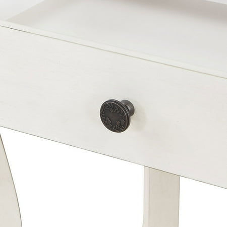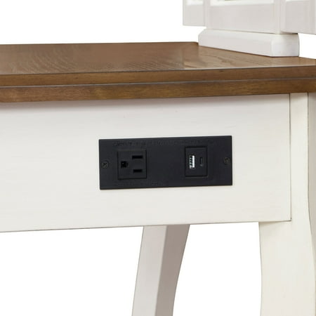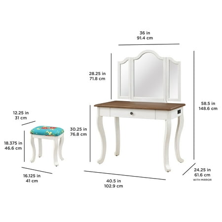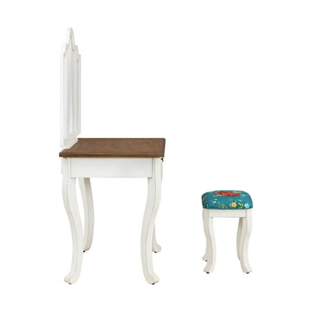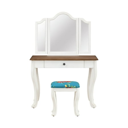The Pioneer Woman vanity set and stool with tri fold mirror makes it easy to get ready for your day. The stool features one of Ree signature floral designs that is sure to add a pop of color to your space. The tri fold mirror is great for being able to see all your angles. With a drawer, you can store all your getting-ready essentials. The farmhouse design is sure to blend with your existing decor. Mix and match with other The Pioneer Woman furniture like headboards, nightstands, dressers, and more to create the bedroom of your dreams. Add The Pioneer Woman vanity set and stool with tri fold mirror to your bedroom today.