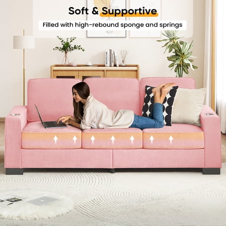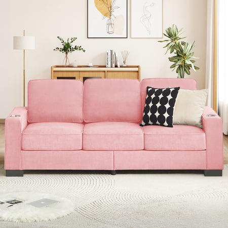 Relax in Comfort: Your Perfect Living Room Companion This three-seater sofa is crafted from soft, durable velvet fabric—cozy to the touch, warm in feel, and built to last. Inside, high-rebound foam and supportive springs work together to keep its shape for long, offering a seat that’s both soft and supportive. The plush backrest gently cushions your lower back, helping you unwind after a long busy day. With handy built-in cup holders, you can keep your favorite drink close while you read, watch, or relax. Designed with clean, versatile lines, this living room sofa blends easily into any style—whether your home is modern, rustic, or somewhere in between. More than just a place to sit, it’s your everyday retreat for comfort, conversation, and calm.