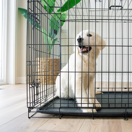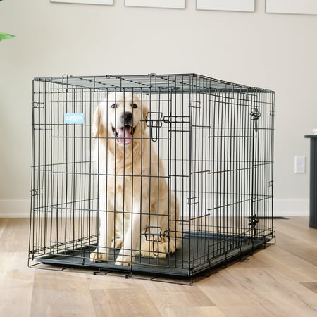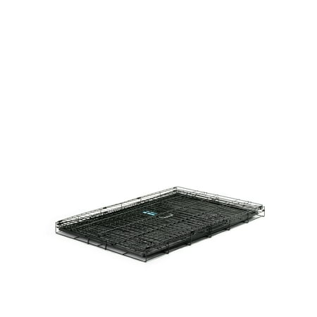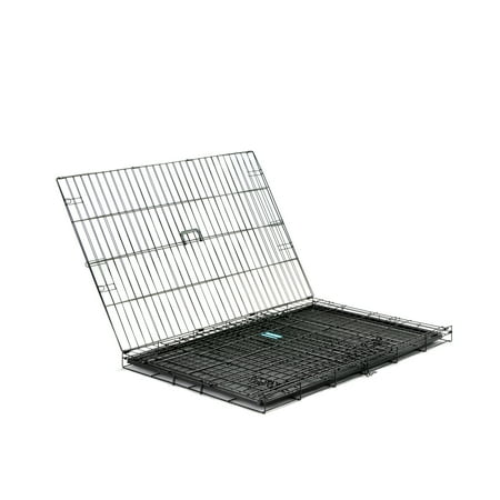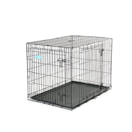 Give your pet a place to feel secure and safe with our Compact Double Door Wire Dog Crate. This crate is constructed of all-metal making it dog-tough, highly durable and secure. The compact crate features a front and side door for convenience. Both doors have a secure double bolt locking system to ensure your pets safety. This includes a black removable and washable composite pan. Quick and easy to set up with no tools required. The compact crate folds flat and locks in place for complete portability or storage. Perfect for car travel or on the go. It is ideal for indoor and outdoor use. Great tool for house training. This Compact Crate is ideal for larger sized breeds.