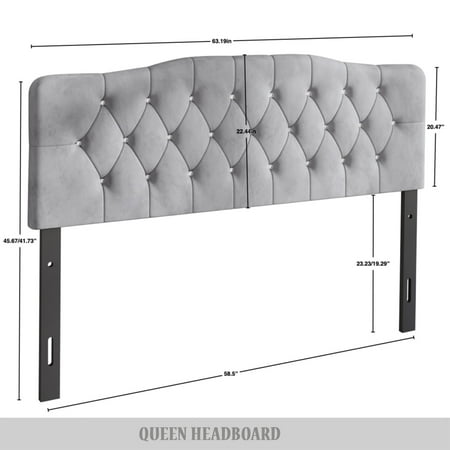 Anchor your bedroom with this luxurious and elegant look headboard. This headboard is perfect for any style of bedroom. The headboard with diamond button tufting stitching and a slightly curved silhouette creates luxe retro glamour and timeless appeal. The headboard is upholstered in high-quality and soft-touch velvet finish, if you need to reading or watch movie in bed, you need a high-quality and comfortable headboard that gives you good support, and our headboard absolutely the ideal choice! Plus, this headboard is adjustable, you can adjust the height to perfectly fit to your bed frame and mattress. The headboard is available in three colors velvet fabric which included Light grey, Silver grey and Light blue. You can choose from these three colors to best complement your bedroom. This headboard comes with various sizes. Choose from Twin, Full, Queen and King headboard to match with your bed frame.