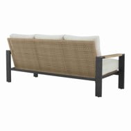 Transform your outdoor space with the Better Homes and Gardens Ventura 6 Piece Outdoor Conversation Set. This set includes, a spacious sofa, 2 pack chairs, 2 pack ottomans, and coffee table. The sofa features a robust metal frame accented with elegant wicker weaving. The generously cushioned seats and backrests provide exceptional comfort, making it the perfect centerpiece for your patio or garden. The durable materials ensure long-lasting use, while the neutral tones complement a variety of outdoor styles.