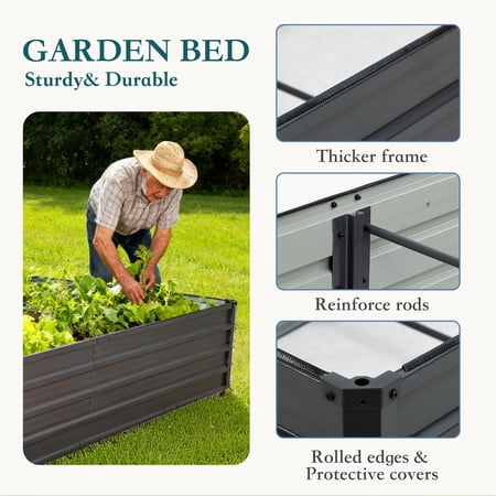 This 6' x 3' x 2' metal raised garden bed offers ample depth for healthy root growth, making it ideal for vegetables, flowers, herbs, and more. Crafted from durable, rust-resistant galvanized steel, it ensures long-lasting performance with minimal maintenance. The elevated design improves soil drainage, reduces weeds, and eases back strain—perfect for backyards, patios, or urban gardens seeking a clean, modern look.