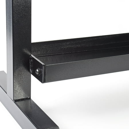 The CAP barbell 20-inch two-tier kettlebell rack will help keep your workout gear organized safely in one place. It is designed to hold a variety of kettlebells, weights, and accessories. This rack is made from heavy-gauge steel and has a weight capacity of 500 pounds. The CAP barbell kettlebell rack features a black-and-grey finish and will look ideal sitting in your weight room. It includes 20-inch racks that supply you with plenty of room to store your kettlebells and weights of various sizes. Weights are not included. This setup is ideal for a home gym and a good way to keep your kettlebells up off the floor where they will remain out of harm's way.