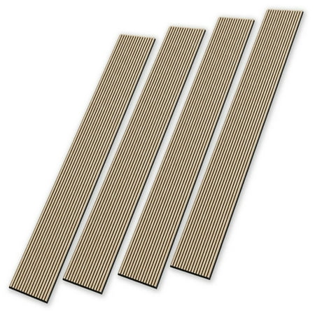 Easy4Home 4Pcs Acoustic Wooden Wall Panels Slatted Elevate your space instantly with our soundproof wood slat wall panels. Each 106" x 12.6" panel features a modern 3D fluted design that adds sophisticated texture and depth to any room. Beyond stunning looks, they provide functional sound absorption. The wooden construction and felt backing help dampen noise, perfect for home offices or media rooms. Installation is a simple DIY project. Transform your walls into a breathtaking accent feature quickly and affordably.