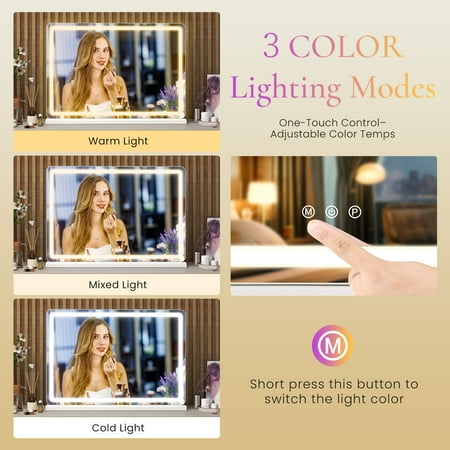 The Gianna lighted vanity mirror offers a perfect blend of style and functionality. Featuring a sturdy base for stable tabletop use, it’s ideal for everyday makeup application. The adjustable LED lighting with three color modes (warm, natural, cold) ensures precise makeup in any setting. Smart touch controls with memory function provide convenience, while the USB port supports charging for added practicality. A stylish and thoughtful gift for beauty lovers.