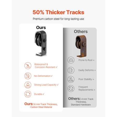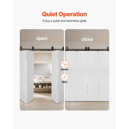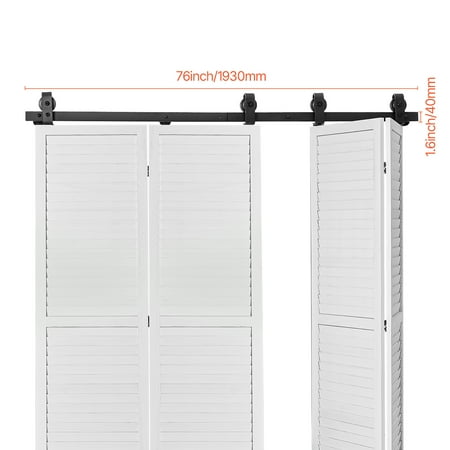 Product Description Effortless Installation, Durable and Smooth Performance Introducing our folding barn door hardware kit, crafted from robust carbon steel to provide long-lasting reliability. With a remarkable weight capacity of up to 330 lbs (150 kg), this bifold closet door track system is built to withstand heavy loads. Its innovative folding design optimizes space utilization, making it an ideal choice for compact areas. The sleek black powder coating not only adds a touch of elegance but also offers exceptional resistance to corrosion, ensuring its durability even in moisture-prone environments such as kitchens and bathrooms. Designed for Your Everyday Routine Crafted with a durable and rust-resistant construction, this bifold barn door hardware kit is built to withstand even the most humid environments. It remains sturdy and free from warping, ensuring reliable performance with frequent use. The track glides effortlessly and silently, creating a serene and cozy atmosphere in your living space. Exceptional Strength for Industrial Applications Engineered to support heavy doors without any signs of warping or damage, this bifold door track kit offers unparalleled strength and stability. It is designed to endure long-term use, providing reliable performance in demanding environments. Hardware Kit Only This product includes the essential folding barn door hardware kit. Please note that doors and wooden panels are not included. Useful Installation Tip Planning to install your bifold closet door track on drywall or over trim, such as baseboards? For a secure and level fit, you will need a mounting board and a few additional parts, which are not included in the kit. Efficient Space-Saving Solution Featuring an intelligent design, this bi-folding sliding barn door hardware kit is perfect for narrow spaces. It offers smooth and noise-free door movement, adding a sleek and uncluttered aesthetic to your surroundings. Versatility for Various Settings The bi-folding sliding barn door hardware kit is a versatile solution suitable for both residential and commercial spaces. It is an excellent choice for living rooms, bedrooms, closets, and small apartments where space is limited. Specifications Item Model Number: 76IN-2D-4K Net Weight: 17.42 lbs / 7.9 kg Material: Carbon Steel Dimensions: 76 x 1.6 x 0.2 inch / 1930 x 40 x 6 mm Color: Black Track Length: 76 in / 1930.4 mm Track Thickness: 0.24 in / 6 mm Track Type: Single Track, 2-Piece Spliced Track Weight Capacity: 330 lbs / 150 kg Package Content 1 x Bifold Barn Door Hardware Kit 1 x User Manual 1 x Complete Installation Kit