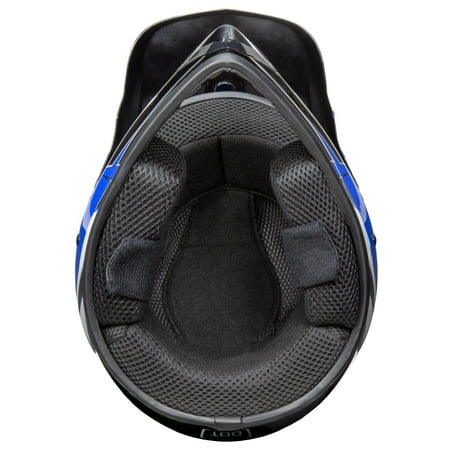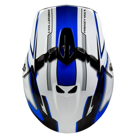 The Frenzy Off-Road MX Helmet by Fuel is a comfortable, lightweight helmet that features a molded visor that can be adjusted to your custom specifications. It has an extra-large eye port and dual rubber grips for goggles. The helmet graphics features a clear coat gloss finish with UV overlay protectant. Removable and washable liner and cheek pad offer easy cleaning options.