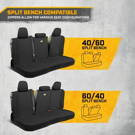 <b>Cat® FlexHybrid 60/40 Split Bench Back Seat Covers for Trucks, SUVs, & Cars, and Vans:</b><br/><br/>Upgrade your vehicle's interior with our Universal Cat® FlexHybrid Napa Leather & 3D Mesh Rear Seat Cover. Designed to fit most cars, SUVs, trucks, and minivans, this back seat covers for SUV, car, and truck will enhance the rear seat protection. Whether you're refreshing your car’s interior or adding an extra layer of defense, these rear bench seat liners provide the perfect solution.<br/><br/>These covers offer a snug, customized fit for most vehicle seats. While designed for a universal fit, minor adjustments may be necessary for a flawless look in your specific vehicle.<br/><br/>Crafted from premium Napa Leatherette and 3D Mesh material, these seat covers provide excellent protection against spills, stains, dirt, sweat, and everyday wear and tear. Keep your seats looking fresh and new with this high-quality rear seat cover.<br/><br/>The adjustable openings for seat belts ensure full functionality of safety features, while the universal fit (55" x 44") makes it compatible with most cars, trucks, and SUVs. Easy to install and maintain, it’s the perfect solution for keeping your seats clean and safe.<br/><br/>Compatible with popular car and truck models including Ford (Explorer, Ranger, Escape, Expedition, Fusion, Lightning Mustang), Toyota (Tacoma, Rav4, Highlander, Prius, Tundra, Camry, Corolla), Chevrolet, Chevy Traverse, Dodge, Honda (Civic, Accord, CRV, Pilot, Odyssey, HR-V), Nissan (Sentra, Altima), Jeep, Tesla, Kia, Audi, Subaru Outback, Hyundai, BMW, Mercedes, Lexus, and more!