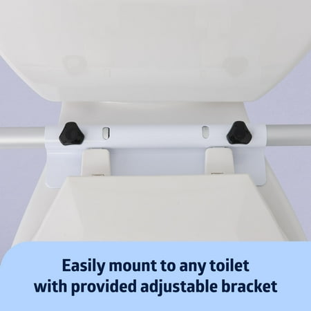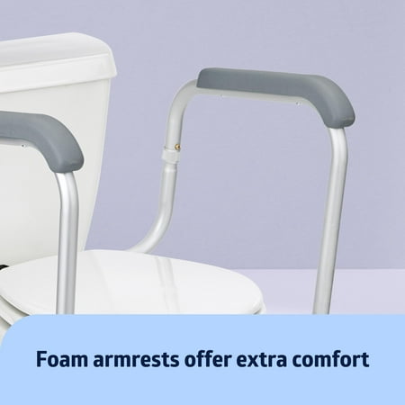The Medline toilet safety rail provides versatile bathroom stability with height adjustable armrests. Easily customize the height of this toilet frame from 27.5-31.5” for a perfect fit. Sturdy armrests ensure a comfortable and secure grip when standing up or sitting down; ideal for everyday use or post-surgery for seniors or adults. The durable aluminum frame and scratch-resistant powder coating make this grab bar easy to clean. Easily installs onto the back of the toilet with the adjustable mounting bracket that comes standard. Product dimensions: 27.5-31.5”L x 19-22”W x 27.5-31.5”H; width between arms: 15-18”; Handle width: 19-22”; 250 lb. weight capacity.