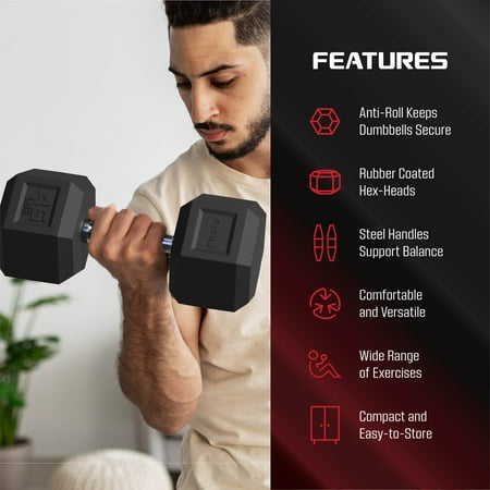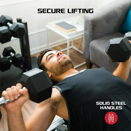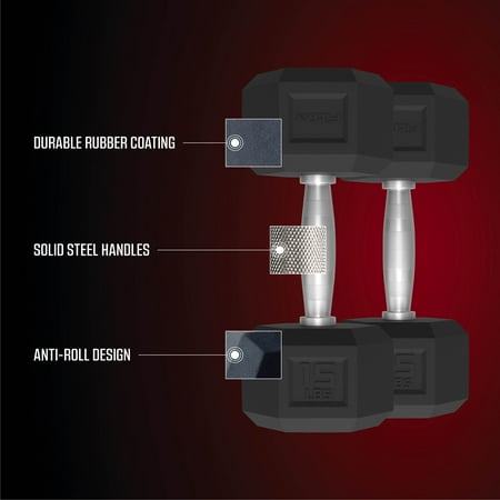 Enhance your fitness routine with the FitRx 15 lbs Rubber Hex Dumbbell Set, designed for durability, comfort, and versatility. Each dumbbell features solid steel handles for a balanced feel and rubber-coated hex heads to protect your floors while minimizing noise. The anti-roll design keeps your dumbbells secure between sets, while the compact size makes this weight set easy to store in any home gym. Perfect for both beginners and experienced lifters, this dumbbell set supports a wide range of exercises—from curls and presses to squats and lunges—helping you build strength at your own pace.