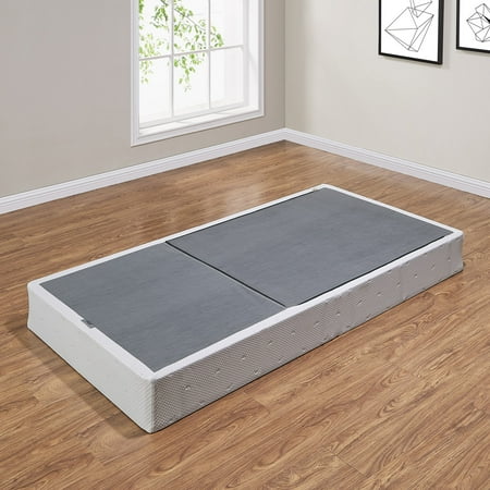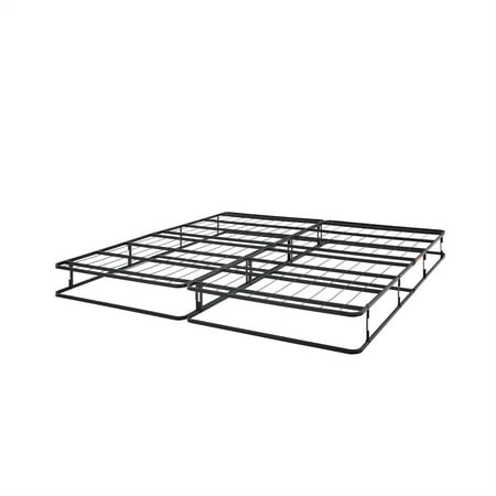 Durably support your mattress with the superior design and construction of Mainstays Fold-in-Half Metal Box Spring in Black. Available in Twin, Full, Queen and King this box spring features reliable and sturdy metal fabrication. This resilient mattress box spring boasts heavy gauge premium steel bars throughout to provide comfortable, trusted support for your mattress. Easily fold away into a flat, compact size, ideal for easy storage and transport no matter where you go. The included coverlet easily fits onto the box spring and zips on for a secure fit and effortless cleaning when required. Mainstays 7.5" Half-Fold Metal Box Spring in Black Steel offers a modern and more durable solution to conventional wood and spring box springs, providing a naturally sanitary structure that is mold, and even bed bug resistant. Never fuss with your mattress moving out of place with the coverlet's non-slip surface, providing sturdy support and comfort while you sleep. Ultra easy to set up in your home, this Fold-in-Half Metal Box Spring from Mainstays requires zero assembly - just unfold, zip on the cover and you're ready to use. The Mainstays Fold-in-Half Metal Box Spring in Black is ideal for use in any room from bedrooms to dorms or guest rooms and is sure to provide you with a durable, clean and supported sleeping environment.