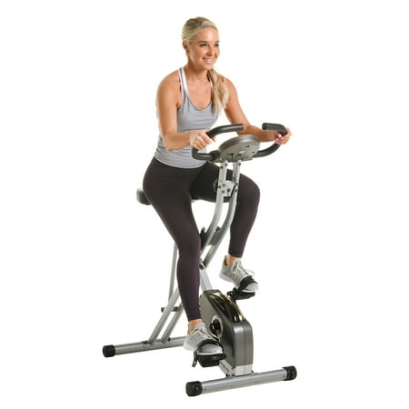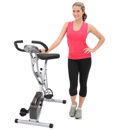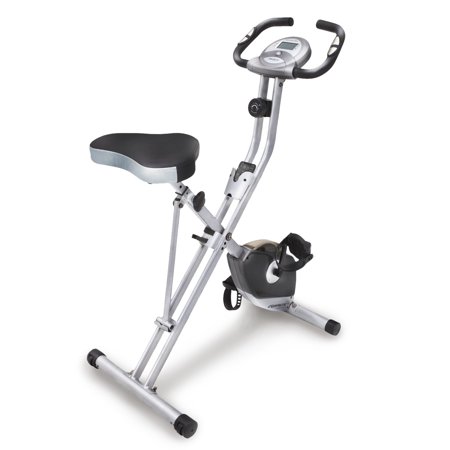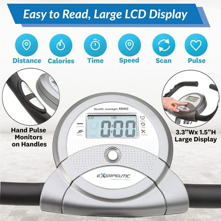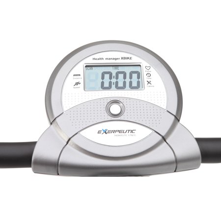 The Exerpeutic Magnetic Upright Exercise Bike with Heart Pulse Sensors will help you work toward your fitness goals. The magnetic space saving exercise bike folds up for easy storage and rolls away when you're not using it. The unique design of this magnetic exercise bike makes it easy to get off and on the Exerpeutic exercise bike, providing a more a more effective and comfortable workout. The Exerpeutic Magnetic Upright Exercise Bike with Heart Pulse Sensors has 8-level magnetic tension control system adjusts for easier or more difficult workout levels and a large LCD panel shows distance, calories burned, time, speed, scan and heart rate monitor. The space-saving exercise bike has precision-balanced flywheel and V-belt drive provide smooth and quiet operation.