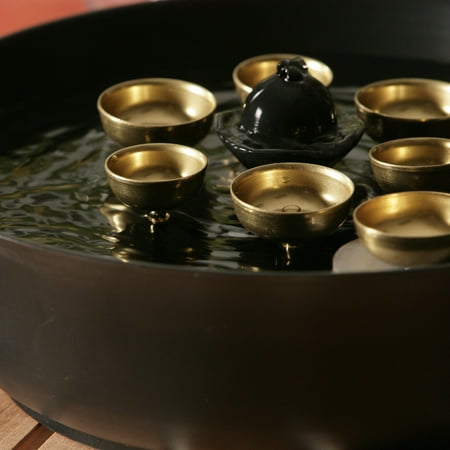 This fountain combines the sound of water with randomly chiming bells. The rhythmic and random sounds of the Encore Water Bell Fountain are reminiscent of the natural sounds of a gently flowing stream. Adapted from an original and copyrighted design by artist and musician Ron Snider, they are handcrafted using solid brass bells for excellent sound. Water bubbling up from the center of the fountain causes two floating bells to gently swirl around six fixed bells, ringing softly when they meet. An adjustable pump lets you control the water flow and frequency of ringing. This musical fountain adds beauty and charm to your home. It flourishes as a centerpiece or accent and will fill your surroundings with joy.
