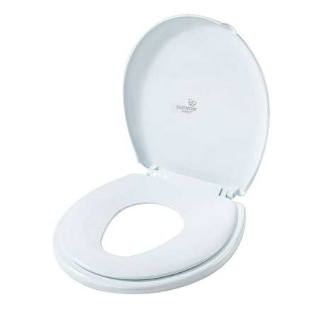 The 2-in-1 potty topper offers a unique, space saving solution that provides convenient access to the toilet for both toddler and adult. East to install. Mounts directly to adult toilet Flip up lid and seats for toddler and adult use Eliminates the need to clean and store a separate training seat Fits most round toilets Hardware included Color: White