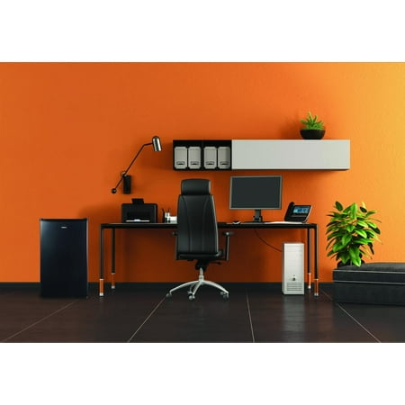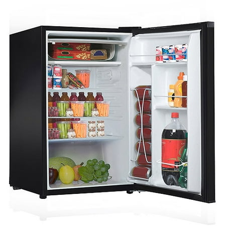 The door even holds 2-liter bottles and an 8-can dispenser. It has adjustable leveling feet for stability on uneven floors. The adjustable thermostat allows you to control the temperature the way you like it. There is a full-width freezer compartment for frozen treats and an interior light for greater visibility.