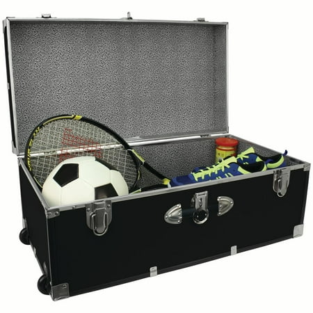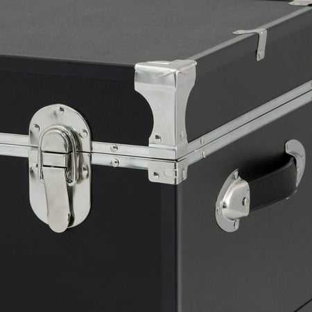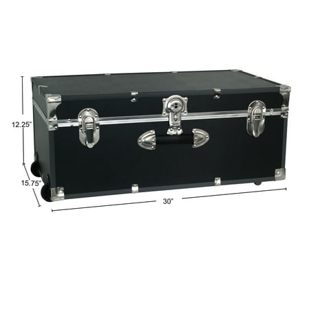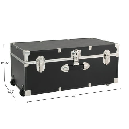 The Seward Explorer 30" Trunk adds style and storage to any room in your home. Stow bulky linens, seasonal clothing or décor, and more. Seward Explorer collection trunks feature durable recessed wheels and two handles to make moving your trunk easy. The dual lock-down latches help keep dust and moisture out. The push-button center latch has an optional locking feature (includes keys). For additional security, add a padlock. A Walmart.com exclusive collection.