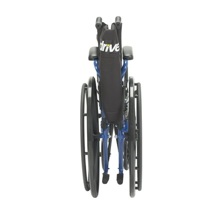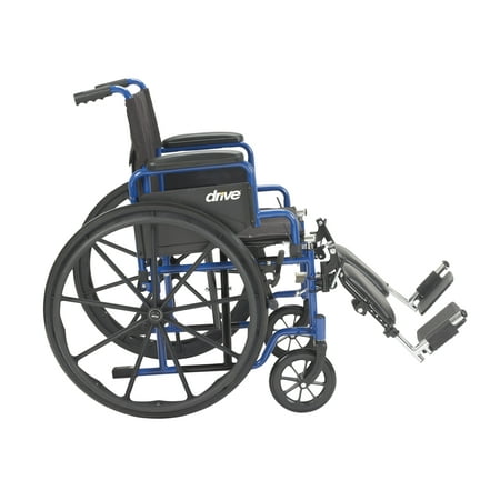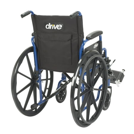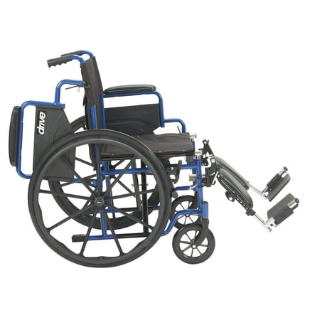 A Mobile Masterpiece of Class Durability and Comfort The Blue Streak Wheelchair with Flip Back Desk Arms from Drive Medical represents a new class of leading-edge mobility enhanced wheelchairs that have been engineered and structured, to not only meet, but exceed the growing demands and expectations of users who cherish independence, mobility and comfort. It arrives at your door loaded with features designed to enable and enhance your mobility and comfort. Arm rests are fully padded. The frame, black cross brace and the nylon upholstery is durable, attractive and easy to clean. The tires which are made of solid rubber, give you an enormous amount of durability. If that wasn't enough, this leading-edge mobility aid also requires little to no maintenance. Users also appreciate that The Blue Streak Wheelchair comes with easy to operate push to lock brakes, along with convenient elevating leg rests that allow you the user, too safely, effortlessly and with convenience, slide in and out of your chair. You'll also appreciate the padded desk arms which furnish you with unbeatable comfort, allowing you to slide up as close as you desire and need to be to tables and or desks. Go ahead Experience the Drive Difference Now!