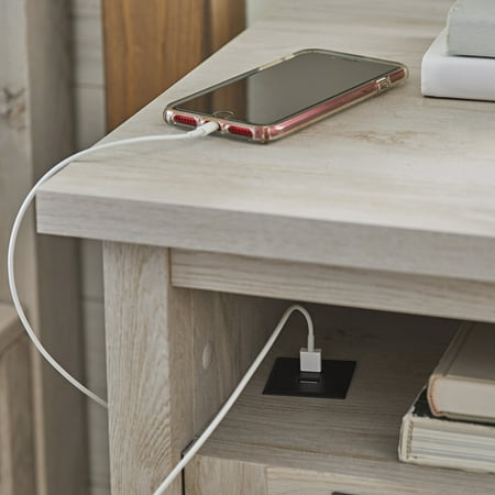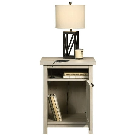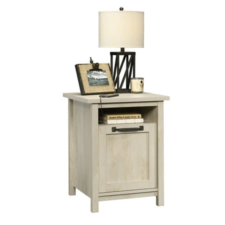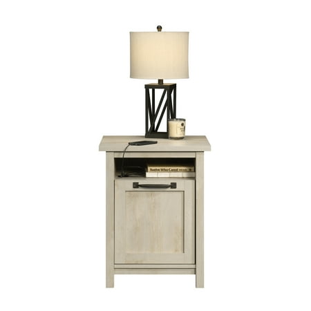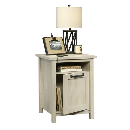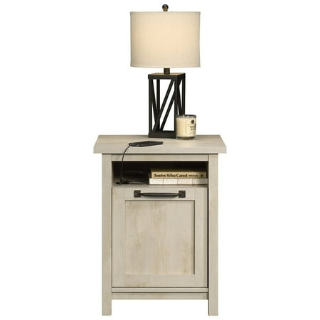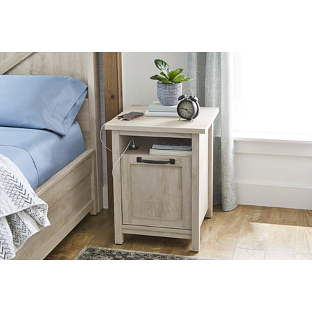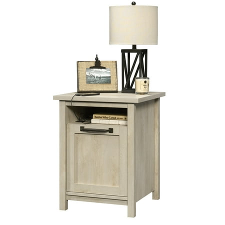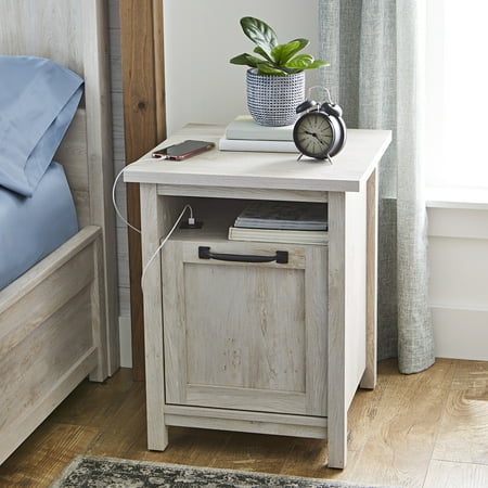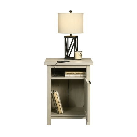 No bedroom is complete without the perfect night stand. Add rustic-inspired style and charming good looks to your bedroom with this night stand from the Better Homes & Gardens Modern Farmhouse collection. This attractive end table offers a spacious top surface that provides you with the ideal amount of room for storing and displaying all your bedside needs – an accent lamp, your alarm clock, knick-knacks and a refreshing glass of ice-cold water. It also includes two USB ports to create a convenient spot to charge electronics like your smartphone, tablet and more! It features an open shelf for easy access storage of items like your reading glasses and the TV remote. Behind the framed panel door is a hidden storage area that provides you with additional space to stow away any miscellaneous items that you prefer your guests not see. It adds beauty no matter where it stands – cozied up next to the couch in the living room or next to your bed in the bedroom. Finished on all sides in Rustic White, this stunning sid