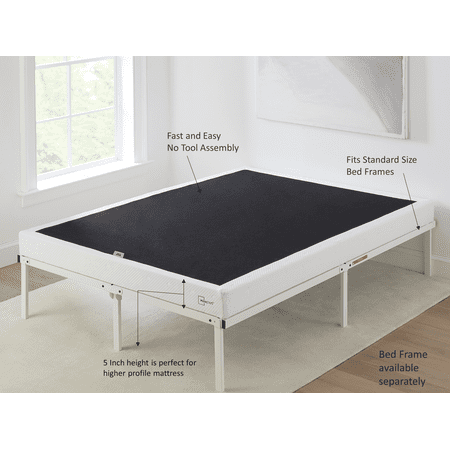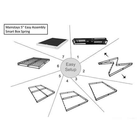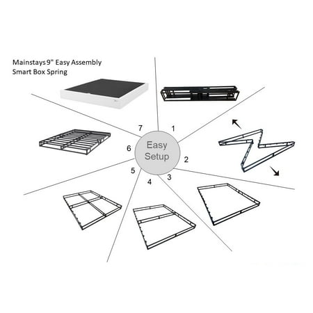 Set yourself up for a great night's sleep with the Mainstays 5" White Jacquard Smart Box Spring. Offers the look and functionality of a traditional box spring but made from steel providing ultra-sturdy support for any innerspring, memory foam or combination mattress. Features a 100% polyester jacquard covering that prevents shifting, this innovative box spring is designed to easily fold up for convenient storage and transport when not in use. The Mainstays 5" White Jacquard Smart Box Spring sets up in seconds with no tools required.
