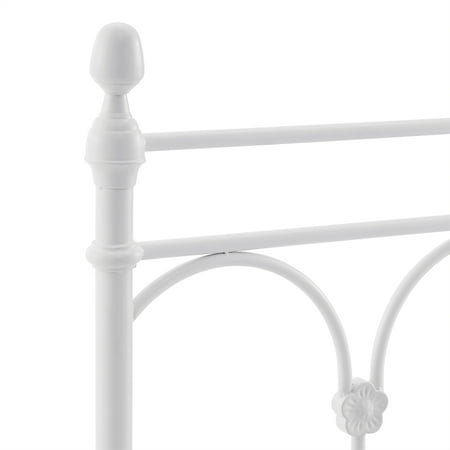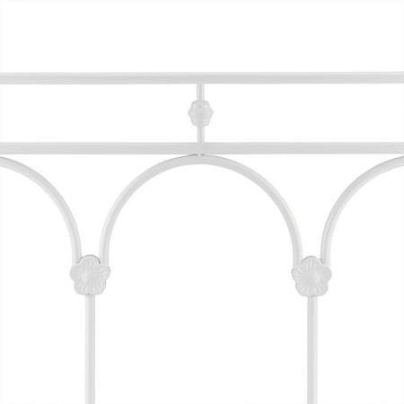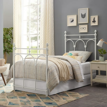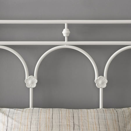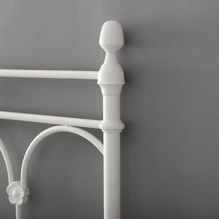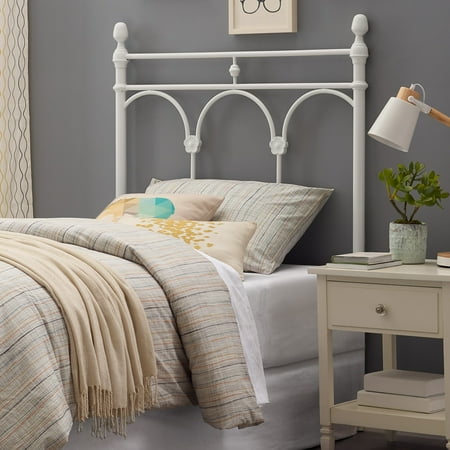 The Better Homes & Gardens Gianna Twin Headboard features a classic white powder coat finish. The headboard features side posts accented with finials. Double horizontal metal tubes top delicate arches that are based with metal floral motif. This simplified take on a traditional design adds charm to a bedroom in any home. Purchase two to make a complete headboard and footboard set. Assembly is simply attaching the tube feet to the bottom of the headboard and the finials to the top. If using as a footboard, the only assembly is the finials on top. The Gianna White Headboard will add a touch of class and excitement to your bedroom!From book cases to TV stands, Better Homes and Gardens furniture is designed to help you organize your home. Look for a new dresser for your clothes, display your favorite books with a bookcase or create your home office with a desk and a cube organizer. You'll also find kitchen and dining tables and chairs, living room furniture and kid?s furniture.