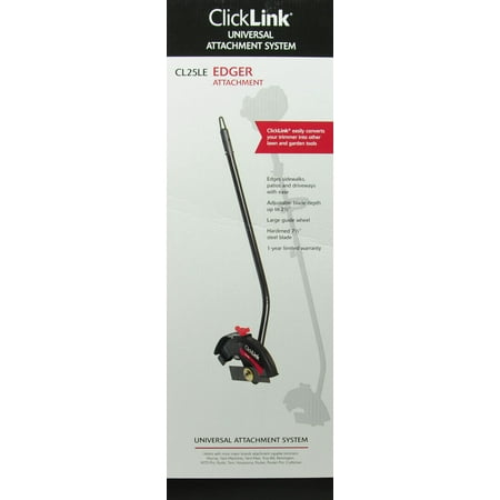Improve your landscape with the help of this ClickLink Universal Edger Attachment. Use it to precisely manicure your lawn to give it a professional look. This trimmer attachment converts your standard equipment in an instant. It comes with an adjustable blade that cuts easily through tall grass and garden beds. This trimmer part has a large guide wheel, which helps ensure that you are making a straight cut along sidewalks, patios, driveways and in other places. The user-friendly design makes it simple to transform your existing tool by swapping out the lower end.