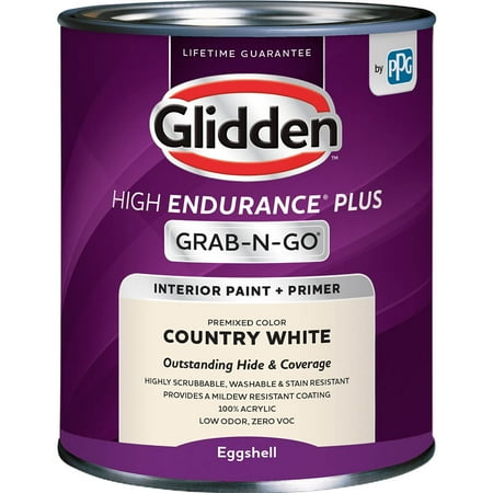 GLIDDEN HIGH ENDURANCE Plus GRAB-N-GO Interior Paint + Primer is a high quality, interior latex paint pre-tinted in our most popular paint colors so you can grab your paint right off the shelf and get painting fast. This low odor, Zero VOC paint provides outstanding hide and coverage and is highly scrubbable, washable and stain resistant. Glidden High Endurance Plus Grab-N-Go interior paint delivers a quick drying finish so you can get your space refreshed and back to being enjoyed. Ideal for use painting on properly prepared interior walls, ceilings, or trim and provides a mildew resistant coating for results that last. This pre-mixed interior paint and primer takes the hassle out of color selection and will help you bring out your true expression in your home. Glidden High Endurance Plus Grab-N-Go interior paint is an exceptional quality paint with optimal performance, offered at a great value. This interior paint is backed by a Lifetime Guarantee and is sure to bring you years of enjoyment.
