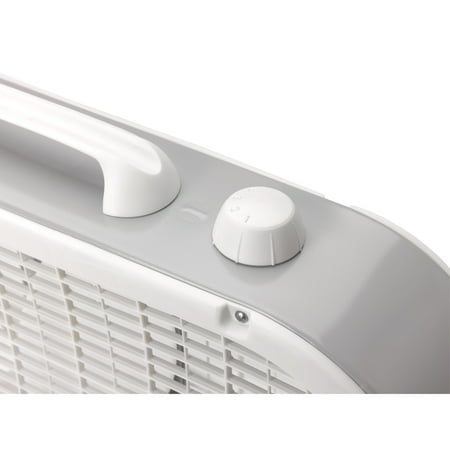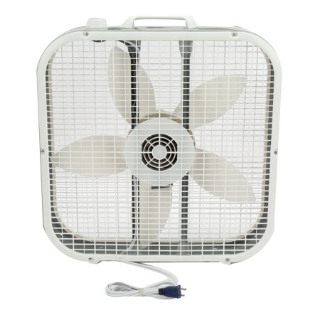 The Lasko 20" Box 3-Speed Fan Model #B20200 creates efficient airflow to keep your home or work space cool and comfortable and to help dry out dampness. There are three quiet speeds to choose from, and the top-mounted controls provide quick and easy operation. You can place this steel box fan directly in front of an air conditioning vent to circulate the breeze faster and boost your chill factor. A built-in handle on the top allows it to be lifted and carried to wherever it is required with ease, and it's lightweight for easy transportation. The metal frame is durable, and the front grill and blades are removable for wiping and cleaning. This Lasko 20" Box 3-Speed Fan also features a weather-resistant motor for worry-free window use. No tools are required to set up this unit. A 72" cord gives you plenty of flexibility as far as where to place it. This white box fan is ideal for keeping your home, dorm room or office cool and comfortable during the spring and summer months.