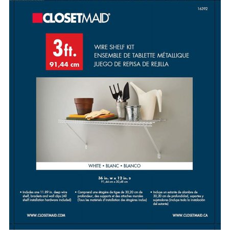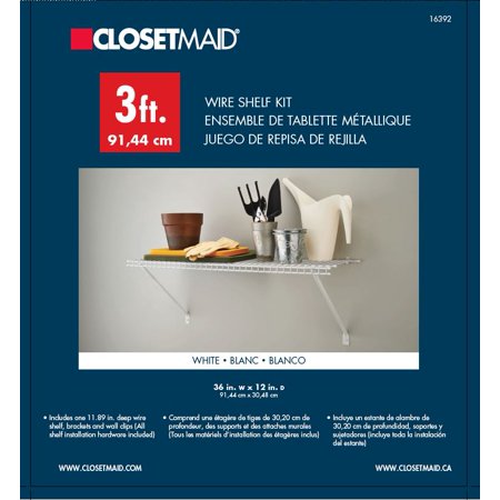 This ClosetMaid® 3ft Vinyl Coated Wire Shelf Kit is a multi-purpose shelf that installs anywhere you need extra storage. This sturdy, steel wire shelf is great in a closet, utility room, laundry room, or craft room. It’s white vinyl coated finish makes it a perfect match for any location.